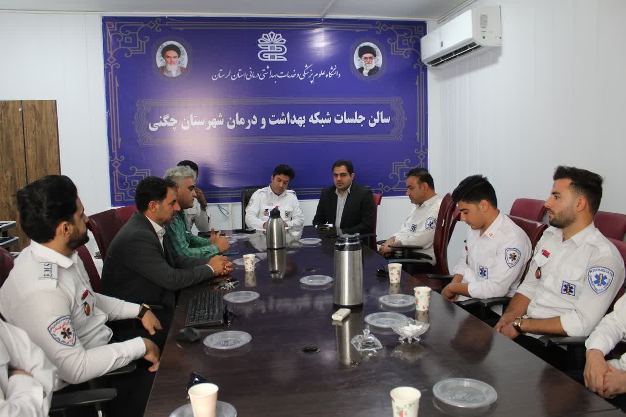به گزارش روابط عمومی شبکه بهداشت و درمان چگنی، جلسه‌ای با حضور فرزاد میر سپهوند رئیس اورژانس پیش بیمارستانی استان،طرهانی رئیس شبکه بهداشت و درمان شهرستان، مسئولان واحدهای اورژانس شبکه ، حراست، مالی، اداری و جمعی از پرسنل ۱۱۵ روز پنجشنبه ۳ مهرماه ۱۴۰۴ در سالن جلسات شبکه بهداشت برگزار شد.  در این نشست، میر سپهوند رئیس اورژانس ۱۱۵ استان ضمن قدردانی از تلاش‌های شبانه‌روزی کارکنان اورژانس، بر تقویت امکانات و تجهیزات، پیگیری مسائل رفاهی و آموزشی پرسنل و هماهنگی بیشتر واحدها برای ارتقای خدمات فوریت‌های پزشکی تأکید کرد. همچنین طرهانی رئیس شبکه بهداشت و درمان شهرستان، با اشاره به نقش حیاتی اورژانس در نجات جان بیماران و حضور به‌موقع در صحنه حوادث، ضمن خسته‌نباشید به همکاران، توجه ویژه به مسائل رفاهی و ارتقای سطح آموزشی نیروها را از اولویت‌های مهم شبکه برشمرد.  در پایان نیز با اهدای لوح تقدیر از پرسنل اورژانس ۱۱۵ قدردانی شد.